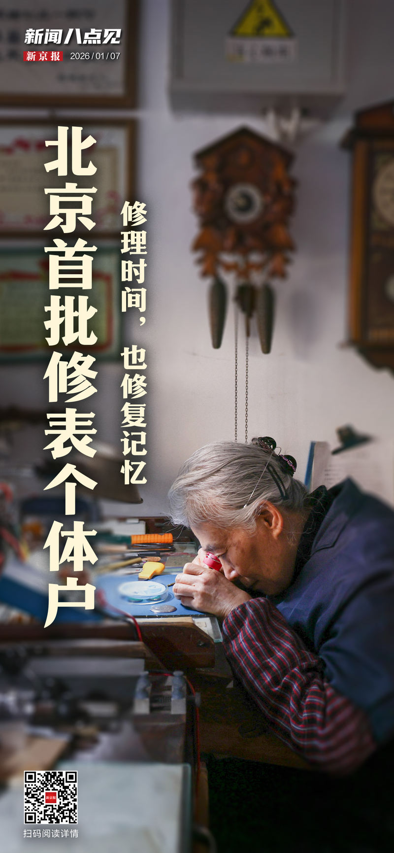 请于 8 点加入我们,了解新闻和更多信息。每天早晚8点准时见面,看世界之大。 2025年12月24日,在朝阳区天香公园,仍能听到京石手表店仍在营业的指针声。 1982年,刘品义创办京师表行,成为北京最早的独立钟表维修公司之一。刘品义先生今日去世。在这家占地10多平方米的小店里,年近70岁的刘先平和儿子仍然专注于为市民修理手表。刘宪平从父亲那里继承了修表技艺。在开店之前,刘品义就以修表技艺闻名。注册成立京师表行后,刘品义先后荣获北京市劳动模范、全国高级个体户等荣誉称号,还荣获全国五一劳动奖章。一家小小的修表店里挂满了荣誉证书以及客户手写的感谢信。 20世纪80年代,对越自卫反击战期间,老人刘品义独自一人奔赴崂山前线,当志愿者,修理士兵手表。在刘显平的记忆中,父亲刘品义工作非常敬业、认真、负责。有一天,刘萍感到胃部不适,去了医院。医生让他给他打点滴,他逃离了现场。医生遇见了他,并跟着他去了表店。此时,店门前已有数十人等待修理手表,但刘品义却不肯离开。医生见状急了,只好捏捏刘皮妮的手背,告诉她自己严重脱水,需要尽快静脉滴注。最后他们强行把他带走了。在修表方面,刘贤平精益求精。她说:“修理一个w有一天,一位比她大两岁的老人来找她修理一块旧怀表。当那块怀表送给老父亲时,它已经不能用了,而且已经很旧了。老人已经找遍了所有能去的表店,最后把手表送给了刘先平。“你的表太旧了,我从来没有见过。修复起来非常困难。手表的主轴完好无损。它已经破旧到看不见了。必须创建一个新主轴。 “网上到处都查不到。”修复过程并不简单,也没有参考资料。但刘宪平就喜欢做这种有挑战性的事情,摸着石头过河,一点一滴地尝试、调整,三个月后终于修好了。当老人拿到一块旧怀表,指针再次转动时,他的手激动得发抖。“其实,有些人修表不就是为了告诉时间吗?”刘宪平还记得,有一次,有一个年轻人来找她,她告诉他,这块手表即使修好了,也不会准。但年轻人却说:“只要我能走路就行了。”原来,这是抚养这个年轻人的亲戚留下的一块手表。他曾向亲戚保证,等他有钱了,就会带她出去,但他却没有等到那个时候,年轻人找到刘宪平,把手表修好了。与亲人交谈的窗口 每次他到了风景优美的地方,看到美丽的风景,他都会拿出手表说:“我们那里的樱花树开了”,仿佛他的亲人还在。 阅读全文 >>> 2025年12月6月,“天堂”在河南省商丘市五营村建起“安门”,仿佛一直延伸到天安门城楼的基座上。城楼上,每面旗帜在风中飘扬着不同的游客。2026年1月3日的天安门壁画。《天安门》记者提供的这张照片实际上是一幅巨大的油画,长18米,高8米,画在五英村的墙上。 (39岁)村民该画自完成以来,成为网红热门打卡地。即使过了新年假期,人数也没有减少。数百人围观现场,举起手机直播或录制视频。禹城市、商丘市,是我带妈妈、领完退休金,去看天安门壁画的地方。要去北京的妈妈很兴奋,穿着新买的衣服和鞋子。同样来自商丘的李琳上次来北京是12年前。目前,她无法长途跋涉照顾孩子,于是她趁着元旦假期,在天安门壁画前报名。 “道路被封锁了两英里,之后“我拍了张照片,他们把我赶出去了。”有人从上海驱车800公里来到吴英村看壁画,也有人趁机直播。把镜头对准天安门壁画前的人流,就能吸引上百名观众。墙上的画可以追溯到2023年。吴承彦想让残疾的爷爷看到山,就在墙上画了一幅山景,这样他一看到山就可以看到山。离开家以来,吴承彦为村里老人的梦想创作了四幅画,其中有一些目前备受关注的作品,比如《黑神话悟空》、《疯狂动物城》,还有一些深受老年人喜爱的历史景点,比如万里长城、橘子洲头、世界之窗……吴成彦用画笔描绘了老年人遥不可及的地方。拉格。在回馈家乡的同时,他也通过其他方式实现了失去的绘画梦想。 >>>近日,辽宁省沉阳市和平区小学三年级期末考试题中出现大量宣传当地文化和旅游的内容,在社交平台上引发家长热议。试题详情包括《辽宁省博物馆》、《作为文创点缀的马梦》、《东北亚滑雪场滑雪》、《马家舒麦230年历史》,以及酒店房间和活动的具体价格全折扣。小学期末考试因含有商业成分而被批评。沉阳市教育局:希望家长避免做出“过度解读”。图/哈尔滨日报视频号 有家长认为,历届考试的题目都是商业宣传。也有家长认为,综合素质期末考试可能会强行将文旅、商科等元素“嫁接到”数学题中,增加与解题无关的背景讲解,增加不必要的阅读理解负担。正是从这个意义上思考,沉阳市和平区教育局教育处负责人伊玛利亚表示,上述考题旨在增加学生对家乡文化的了解,相关情况的传播者与商业推广无关。工作人员表示希望能够解答个别家长的疑问。我们请家长和监护人不要将此视为“广泛解释”。将现实生活应用场景与数学试题相结合,考核学生运用所学知识解决问题的能力,一直是近年来数学命题改革的方向。包含 l 是否合适小学数学期末试题中本土文化和旅游内容的多少,取决于试题是否注重考查学生的知识能力和学科素养,以及是否达到数学学科考试的要求。针对一些家长的疑问,各地教育部门和学校不妨从命题改革的角度来专业分析这个数学问题,让家长了解命题改革的方向,关注孩子数学素养的发展,同时也考虑命题改革可以进